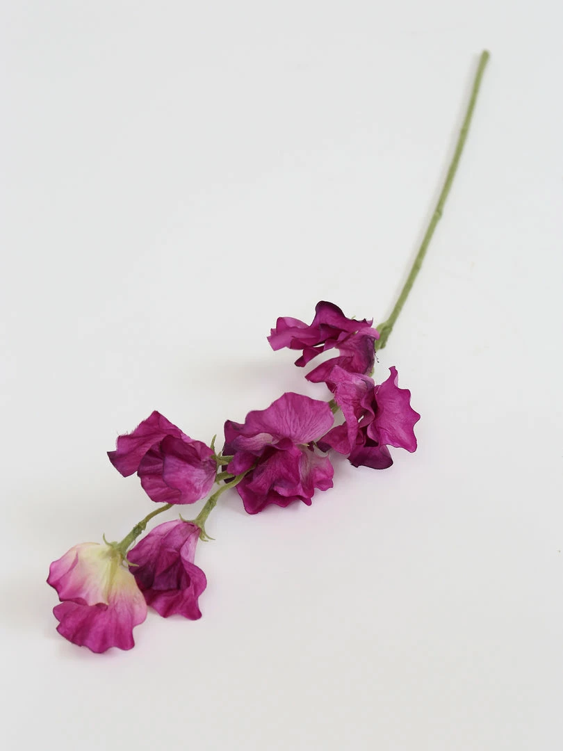 Descrtiption: These sweet and subtle sweet pea floral stems are absolutelt stunning! Perfect for a small vase, or add more for a nice full look! Available in White, Fuschia, Purple, and Magenta!