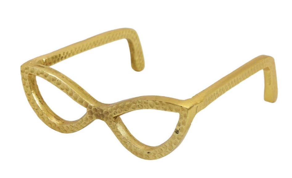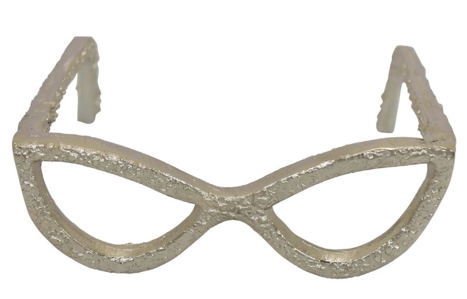 Description: This textured cateye glass sculpture is a great addition to any shelf, bookcase, or coffee table! With the choice of silver or gold, these glasses are very versatile and are such a cute piece!