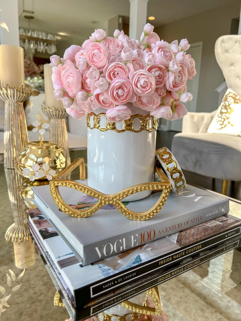 Inspire Me! Home Decor White Ceramic Vase With Stunning Gold Floral Detailed Center