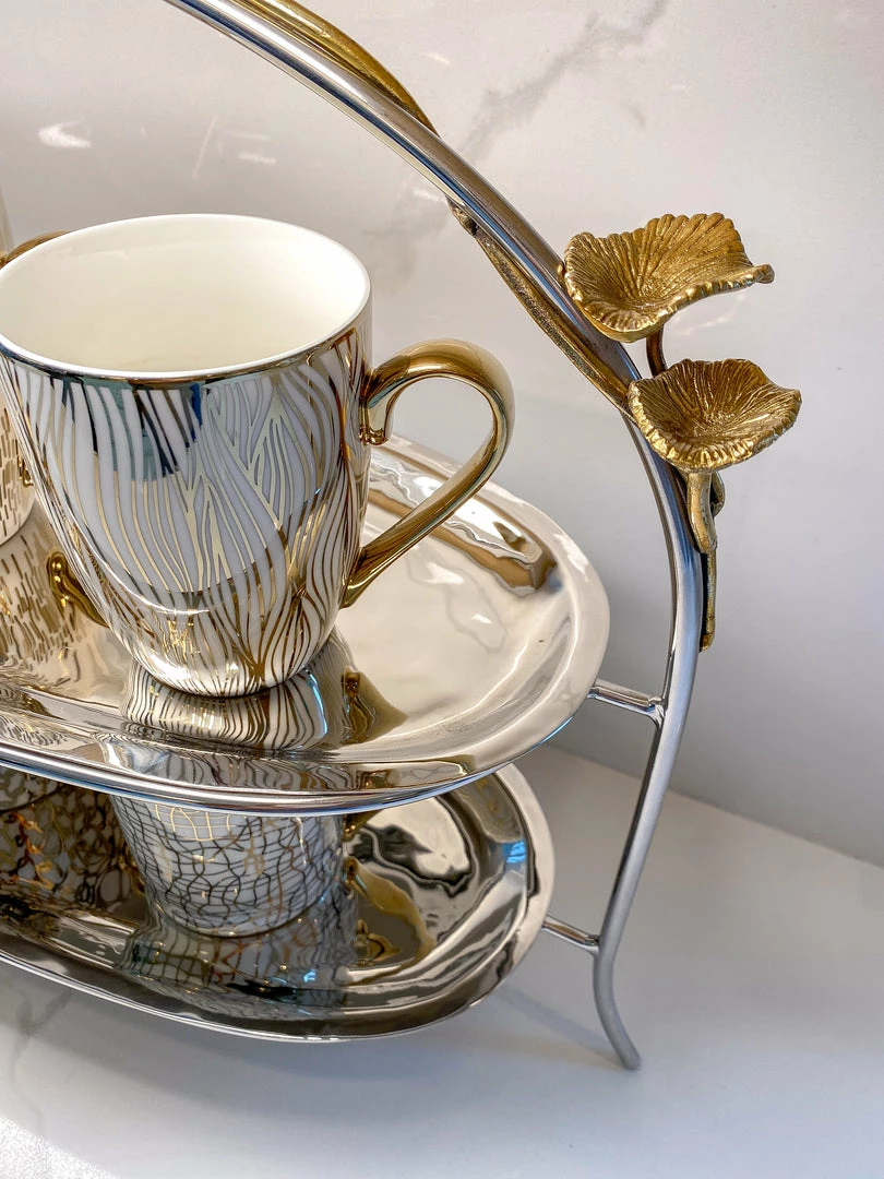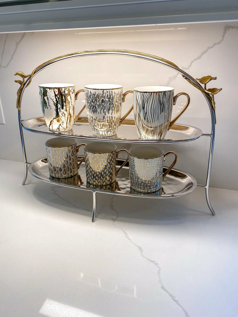 Description: This beautiful gold stand is perfect for your coffee station, or adding extra storage anywhere in your kitchen! The gold floral details add some much beauty and elegance to these design.