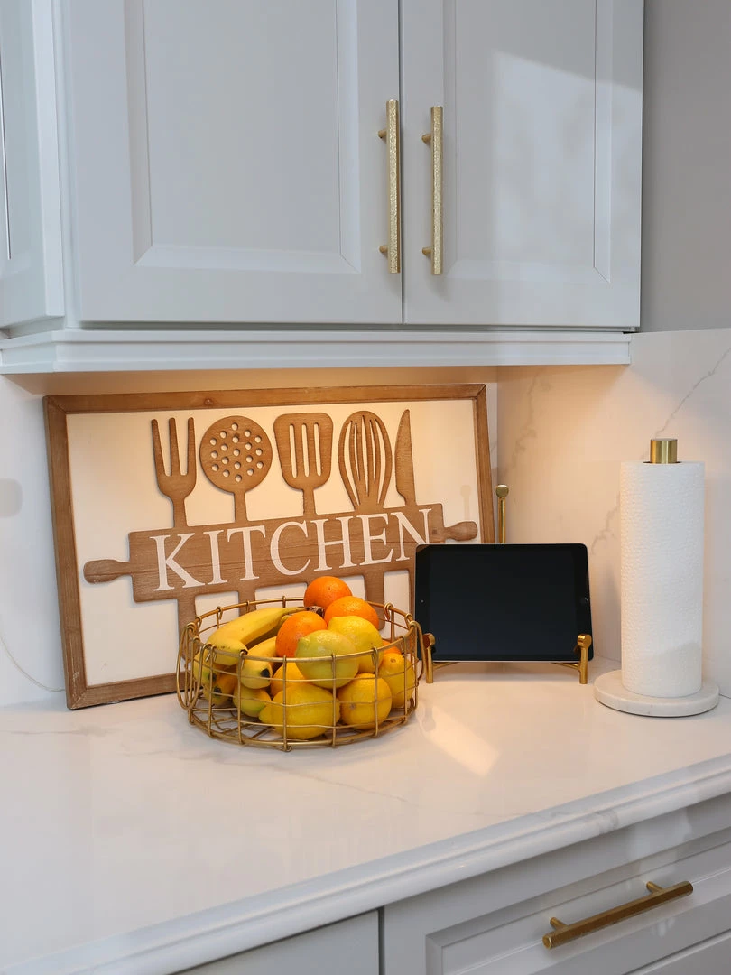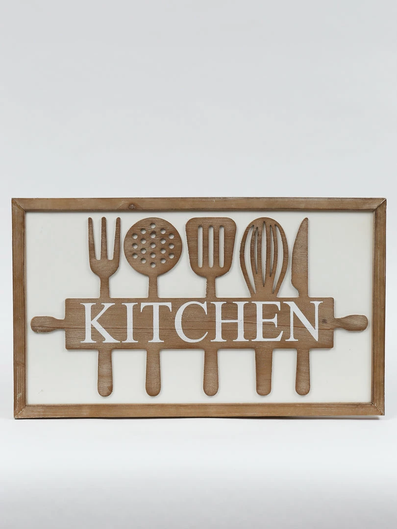 Description: This beautiful sign is the perfect accent to your kitchen! The wood offers a warm look, white the white outline still makes this look clean and modern!
