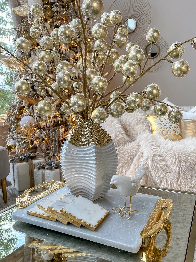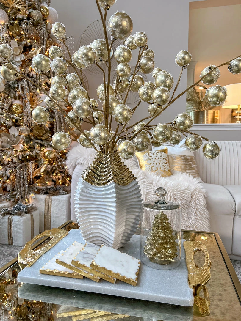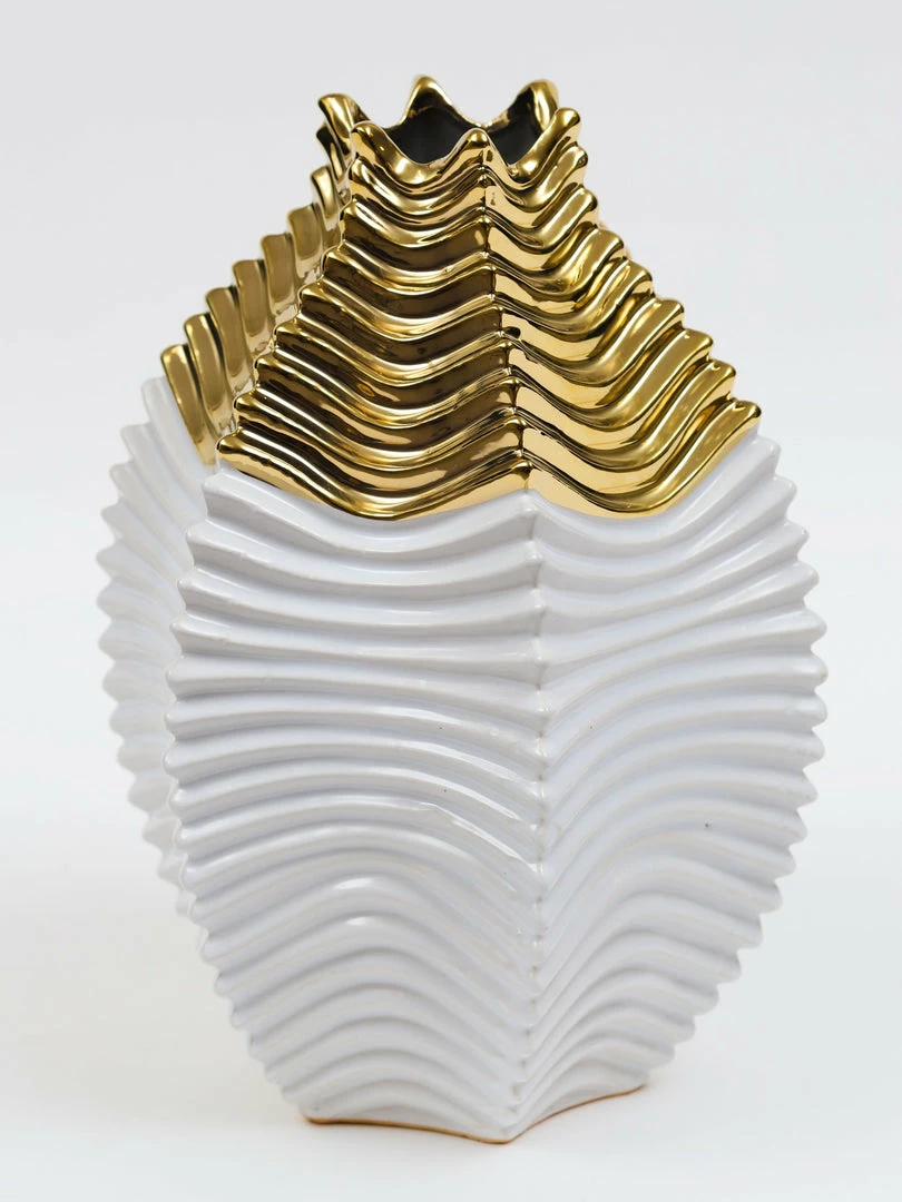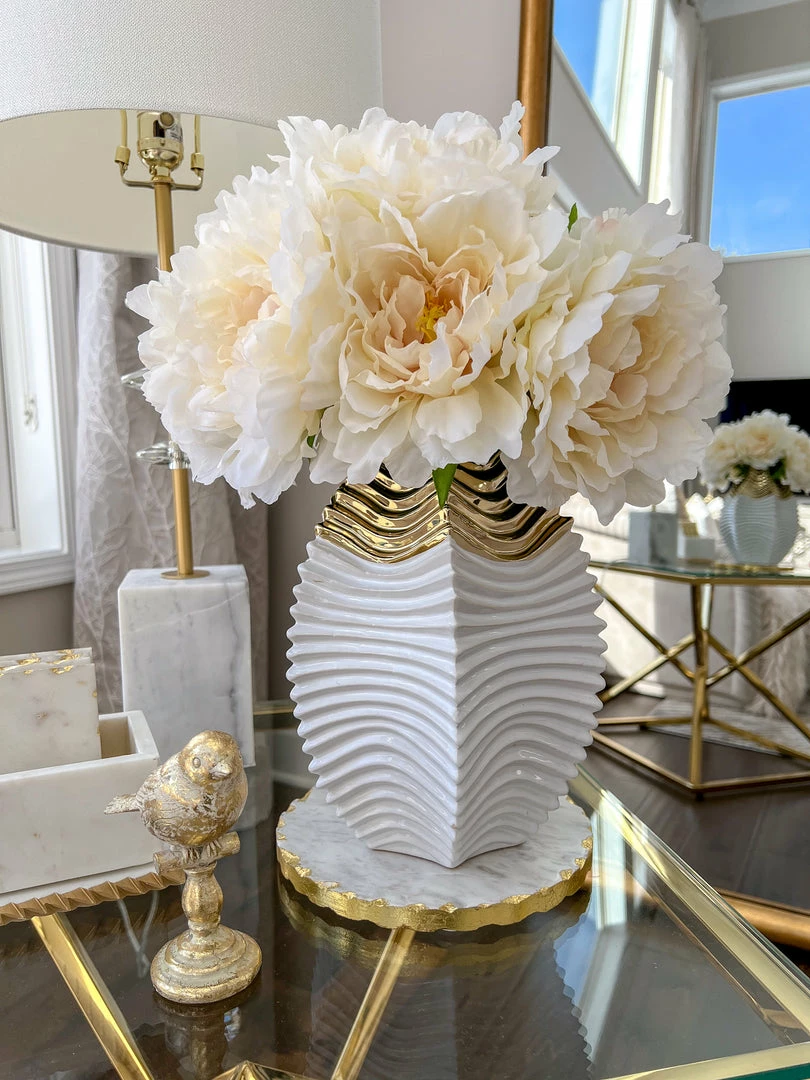 Description: This gold top and white base is a must have! Style it on any tray or shelf for a timeless look. The ridged outside will bring texture to any room.