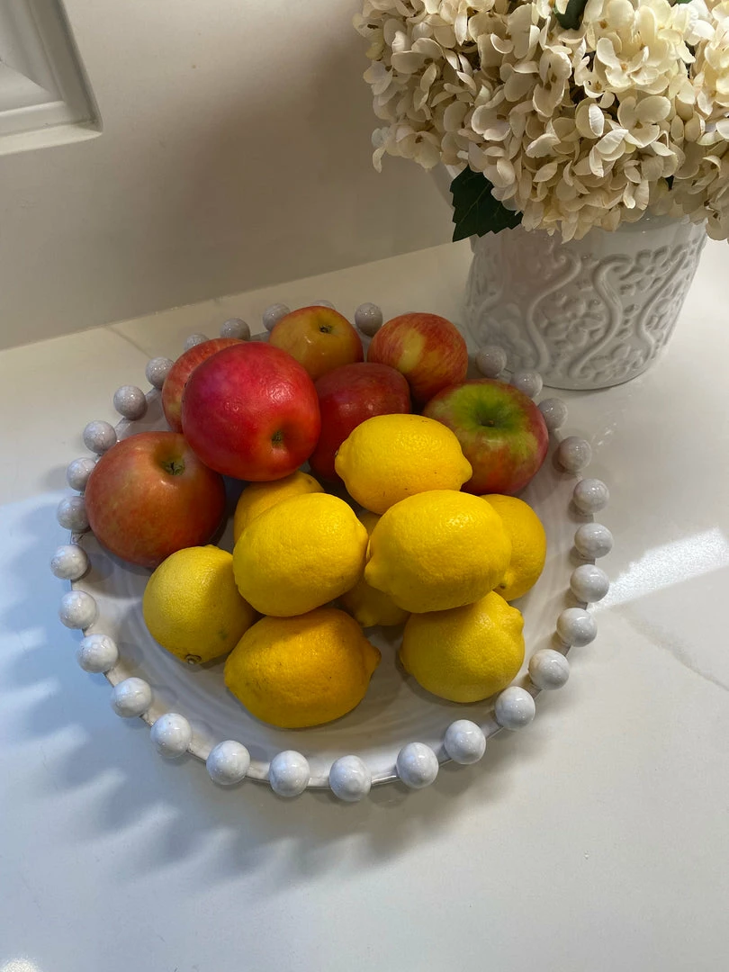 Description: This stunning beaded tray is a perfect base for your layered looks! Add your perfect home decor pieces for a stunning design!