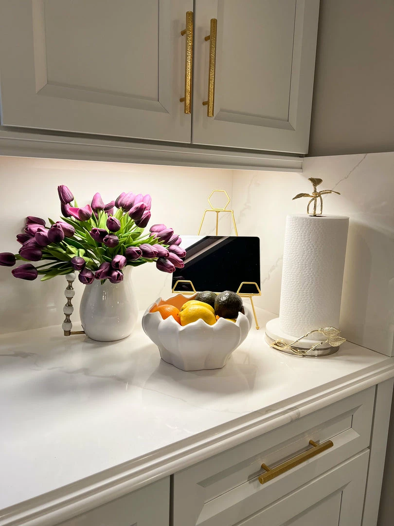 Inspire Me! Home Decor Round Marble Tray With Gold Edge And Metal Details