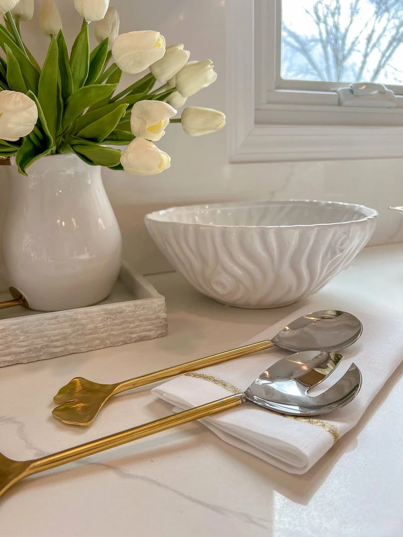 Description: These white ceramic bowls feature a wood grain texture and are perfect to hold your favorite florals or fruits! We love the clean look!