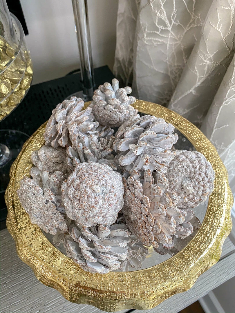 These white flocked pinecones are the definition of a winter wonderland! Use them as a bowl filler or to decorate your tree! Comes with about 20 pinecones!