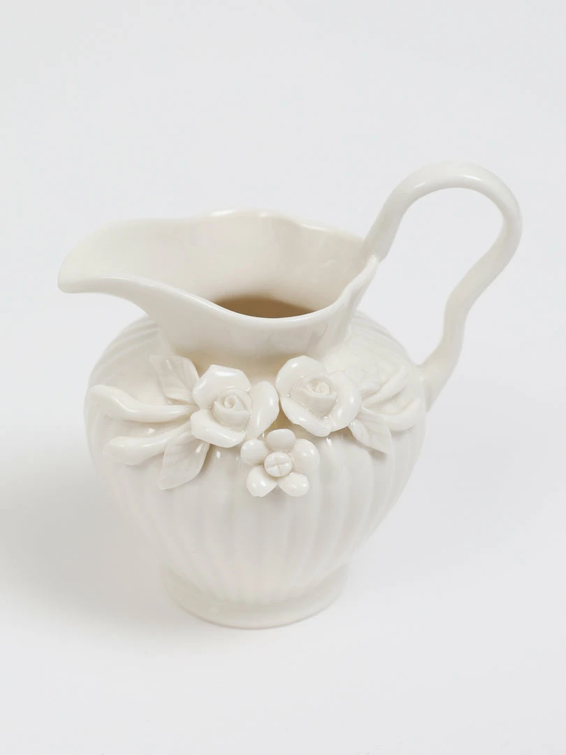 Description: This is a beautiful white tea set with floral designs and will make your tea time perfect every time!