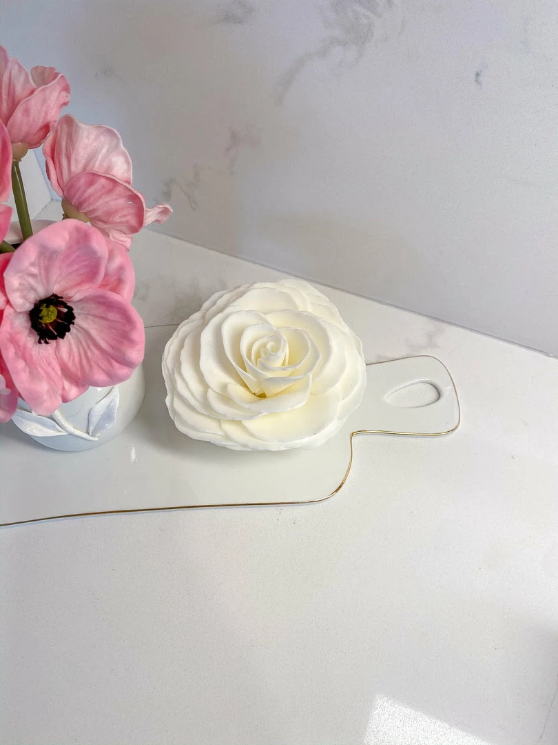 Description: This beautiful gardenia flower soap is perfect for your bath decor! Simply peel off a petal and use that to wash up. Each soap design comes with a small plastic dish to set the petal on until it is used up!