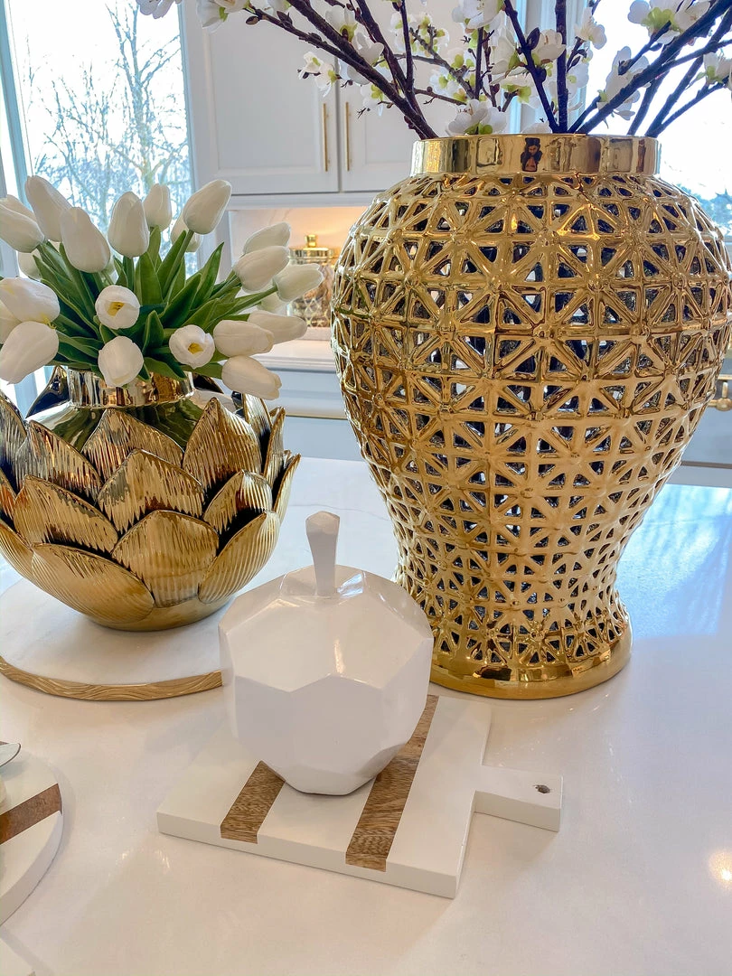 Description: This gorgeous geometric apple is a unqiue piece for your table top decor! The sharp angles in the design make this very modern and elegant. The white finish will blend seemlessly into any other decor!