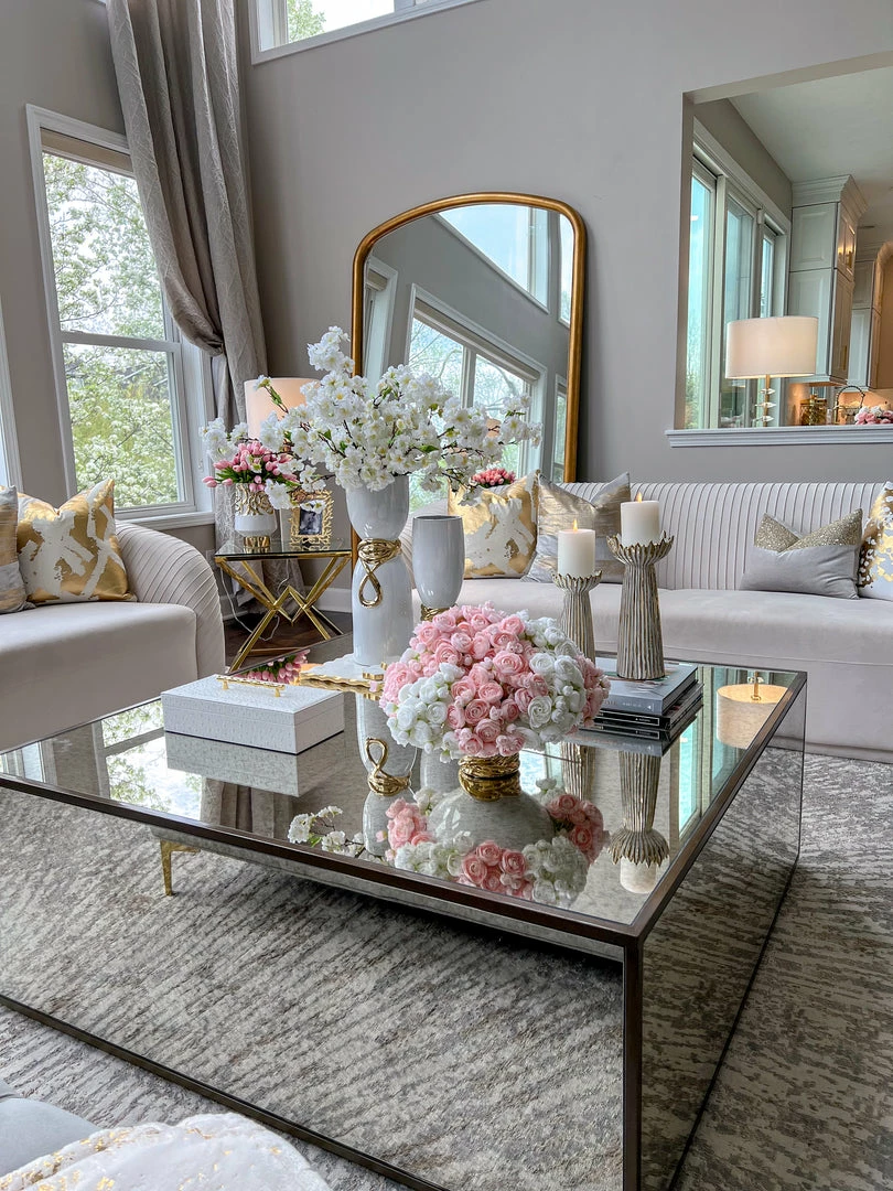 Description: This candle holder will bring texture and glamour to your room! We love the white and gold combo and they look great with pillar candles on top.