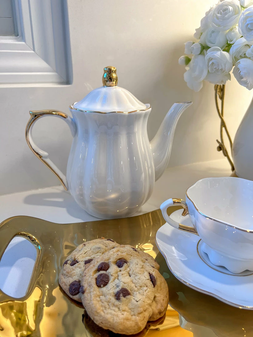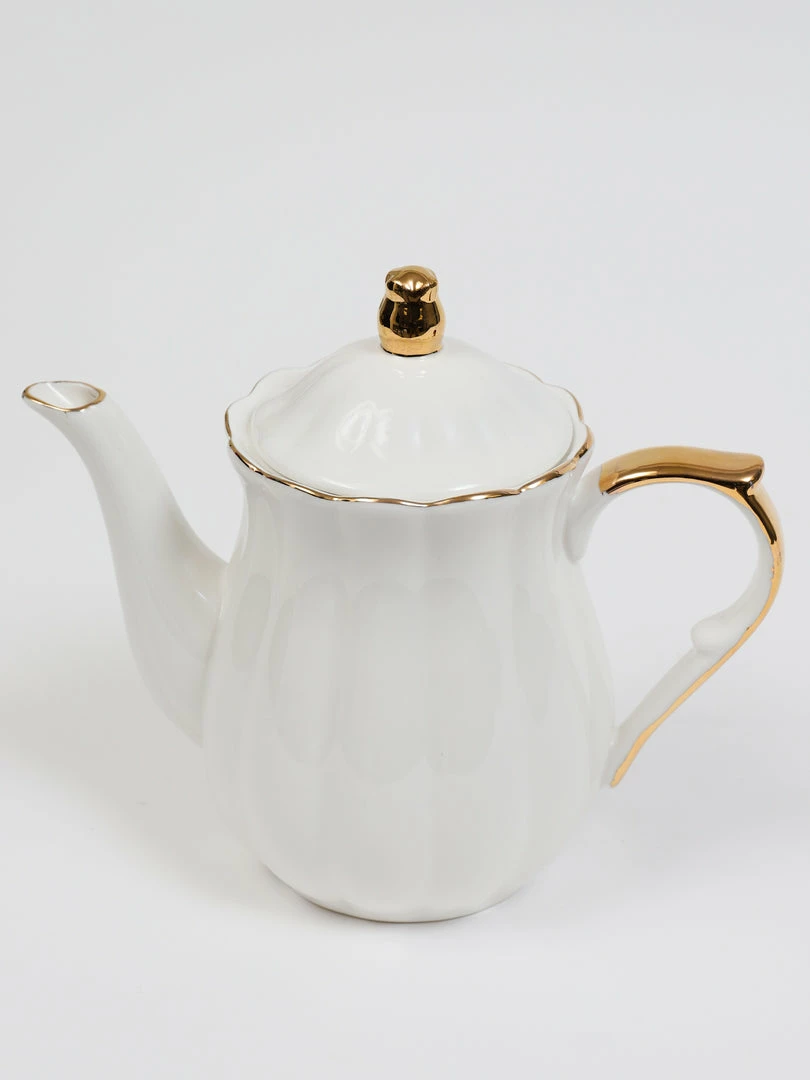 Description: Enjoy tea time anytime with this gorgeous scalloped gold and white 4 cup teapot.
