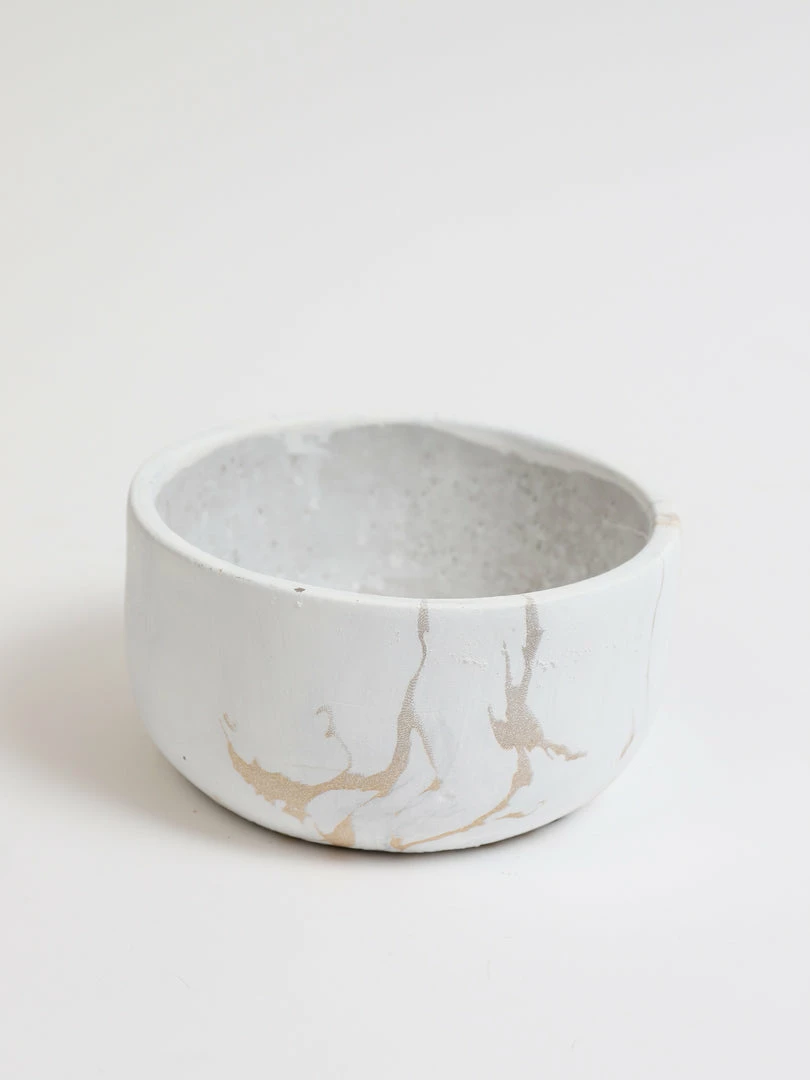 Description: This is a gold and white marble planter/vase that will look great with any style of decor. Fill with faux florals or other items.