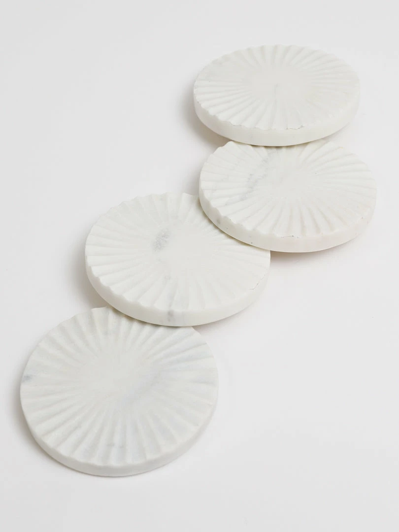Description: These carved white marble coasters are simple yet beautiful. You can always use some marble coasters on your side table or coffee table!