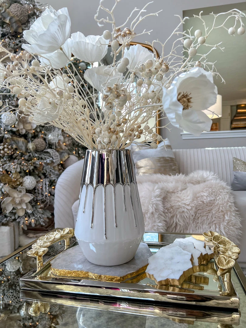 Description: This white porcelain vase has a dripped border and in one word, is simply GORGEOUS!