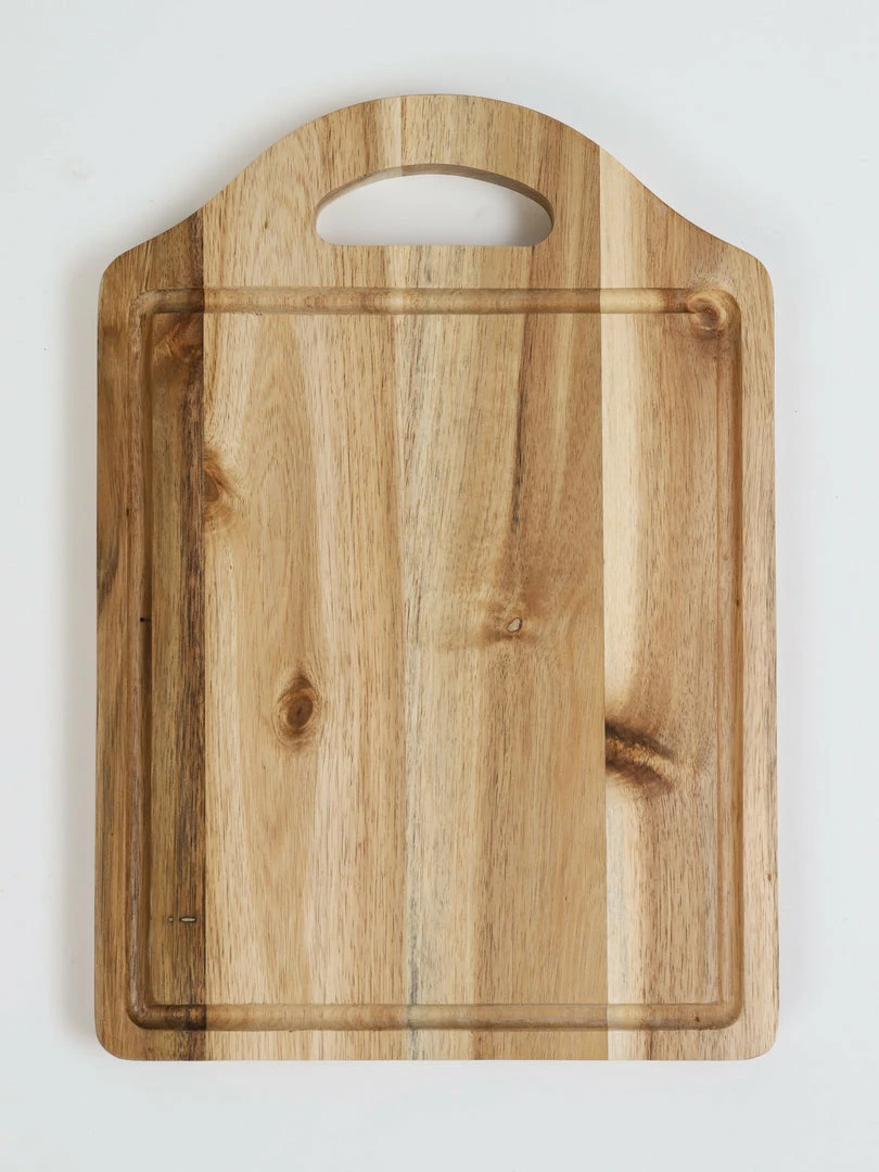 Description: This simple cutting board is sophisticated and functional! The slotted groove helps catch any liquid before they reach your counter!