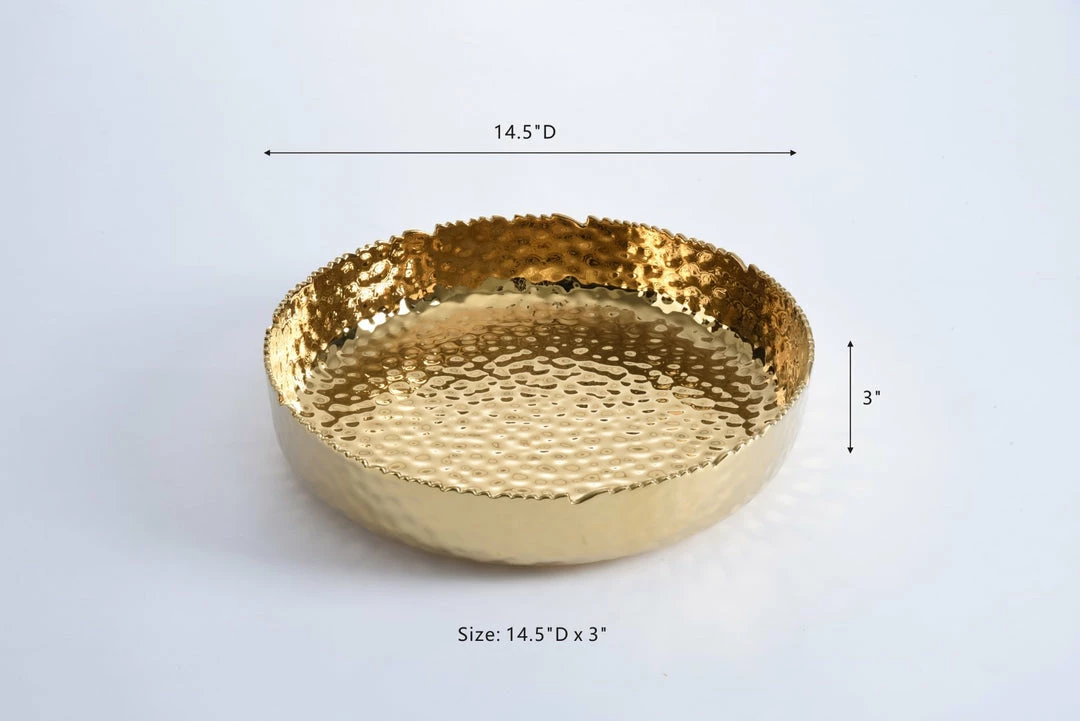 Description: This high quality porcelain is a miracle material! It is food safe, dishwasher safe, and oven safe up to 350 degrees! Made in Argentina, this beautiful porcelain is also tarnish free, scratch/stain resistant, will not lose its beautiful luster, and is perfect for everyday life! Baking and serving never looked so good! This large textured shallow bowl would be great for serving things, or for more of a display tray. It is a very versatile piece and is substanital in person!